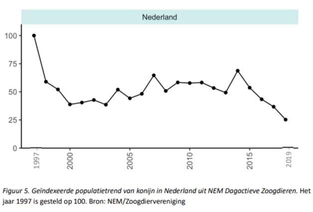 Door de steeds weer opspelende virusziekten nam de populatie konijnen in Nederland, vooral in de jaren negentig, sterk af.